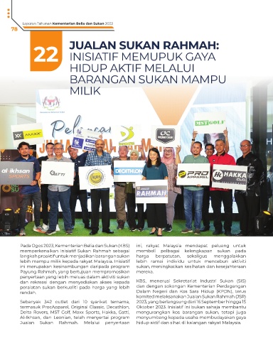Jualan Sukan Rahmah. Melalui penyertaan hidup aktif dan sihat di kalangan rakyat Malaysia.